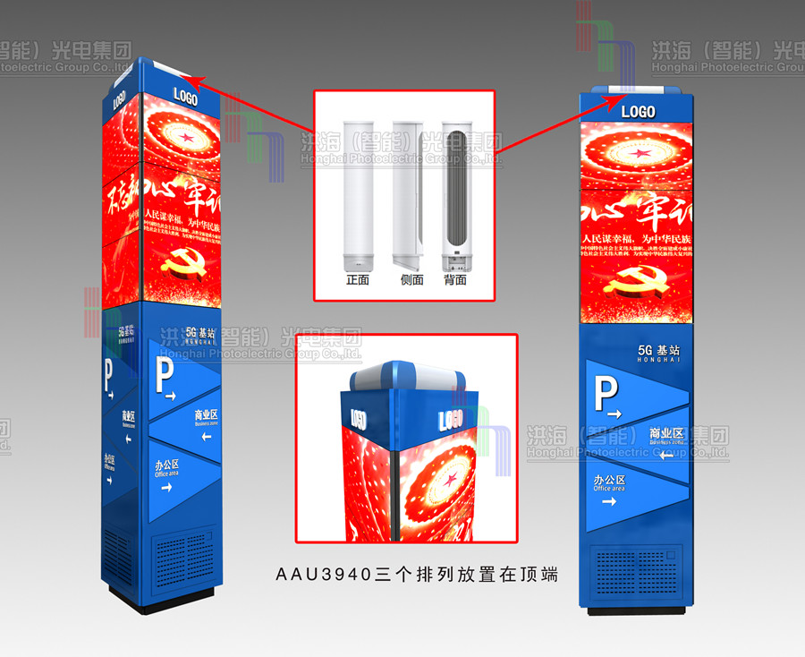(2)洪海5G智慧燈桿螺旋旋轉屏的音響要定做,一般音響無法內置,要防水,要達到傳播距離