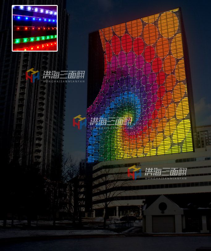 3.透明led顯示屏安裝于幕墻內部,戶外觀看