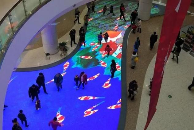 洪海智能光電公司在山東臨沂齊魯園制作的室內異形LED互動地磚屏,剛一安裝完工就引起了群眾們極大的反響。此LED互動地磚屏的總面積達到136平方米,用以p6.25的像素,安裝在齊魯園室內的地面上,從其外觀造型的角度講,該地磚屏類似于陰陽太極圖上的陰陽魚,具有招風水的美好寓意;而從功能技術上講,該地磚屏具有承重性、防護性、散熱性以及互動性,然而其中較數互動性最具創意感,是根據捕捉人的活動軌跡展現出互動的效果,從而呈現出足下生花之感,依此達到人屏合一的感觀效果。