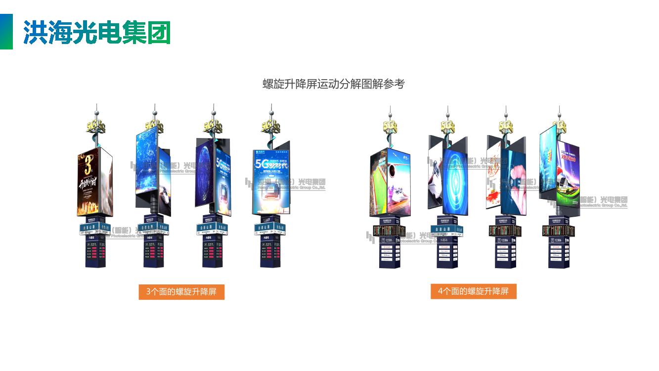 簡單來說就是由三個led顯示屏組成,每個顯示屏都可以獨立上下升降,也可以360度整體旋轉同時播放視頻動畫。和畫面互相配合,是集機械力學、工業編程和視頻編輯多種功能于一身的新型廣告媒體。