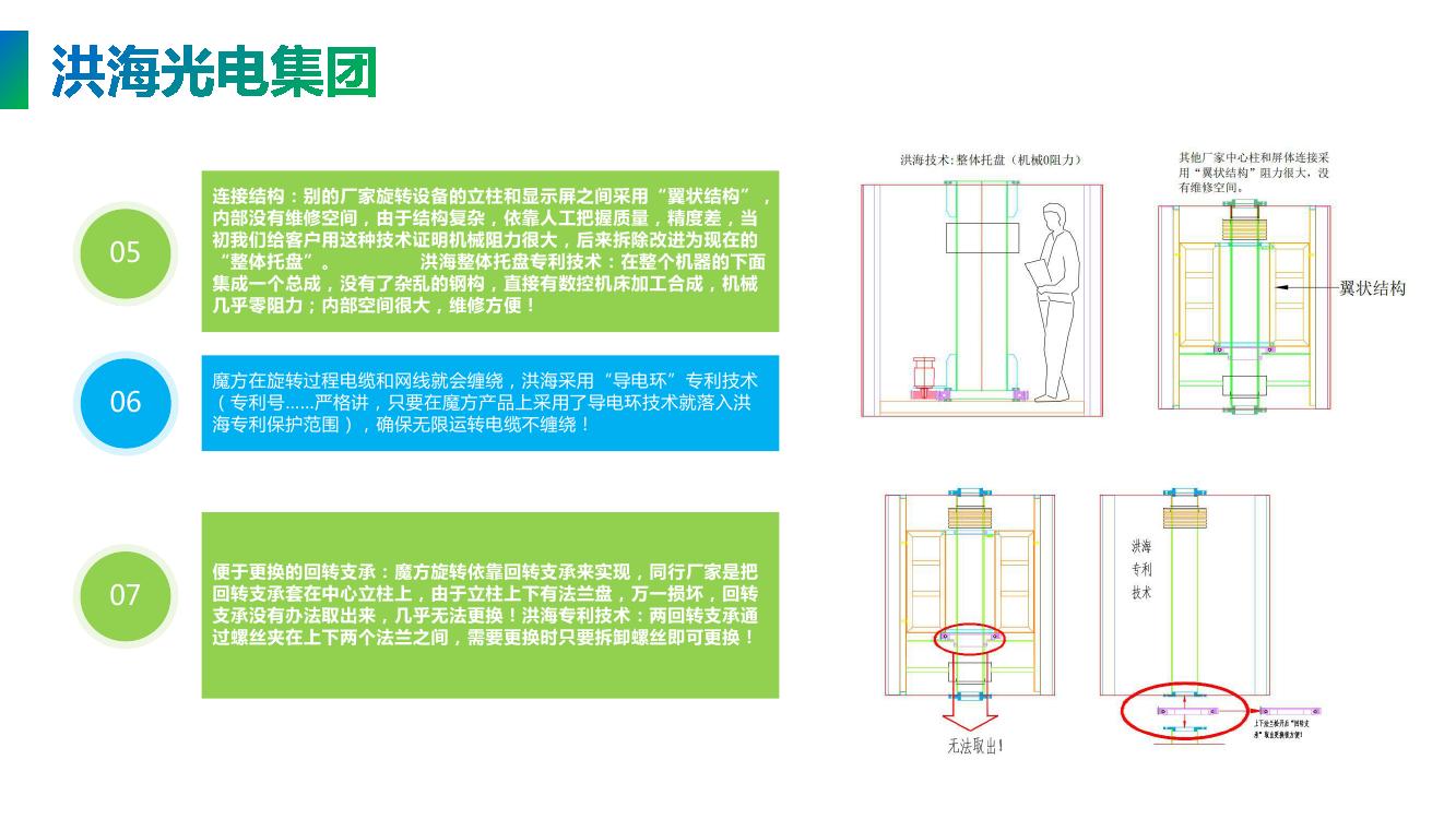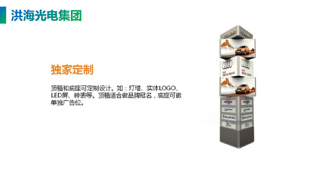 具體來說是:LED旋轉(zhuǎn)魔方屏是由三角形或四方形LED顯示屏箱體組合,在旋轉(zhuǎn)支撐、不繞線導(dǎo)電刷、轉(zhuǎn)動花樣軟件編程等多個系統(tǒng)配合下,使三個三角形或四方形LED顯示屏按照電腦編制的程序---不同時間花樣轉(zhuǎn)動---定格在一個平面,展示三個視頻畫面。相比傳統(tǒng)顯示屏更具有動感和視覺沖擊力,新穎的廣告形式,大大提高了顯示屏的功能檔次和外觀裝飾效果,同時具有藝術(shù)氣質(zhì)的高科技產(chǎn)品,瞬間吸引您的眼球,提升廣告創(chuàng)意,帶來更大的商業(yè)價值,成為美化城市的城市地標(biāo)。