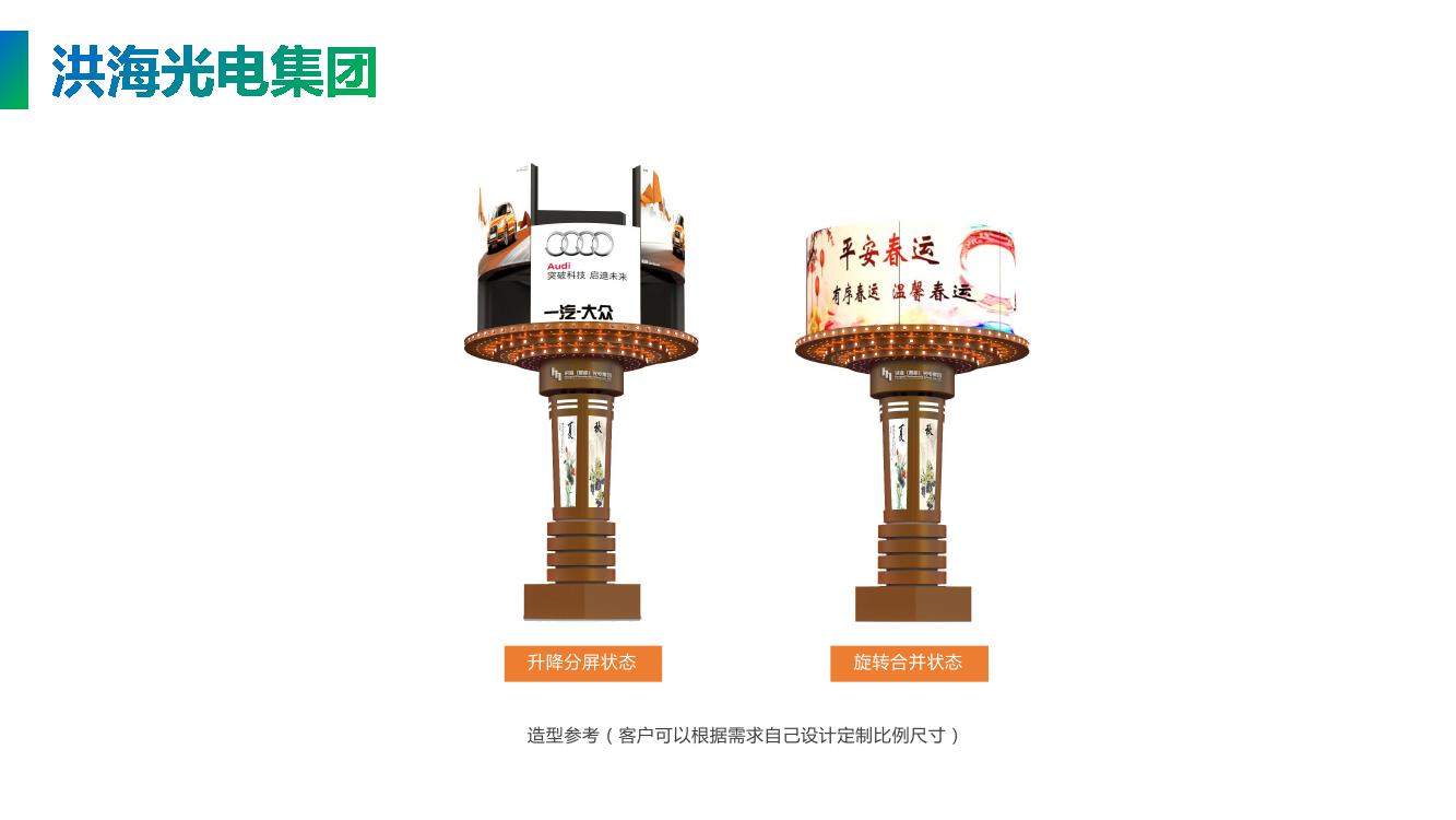 洪海光電集團有限公司 是一家專業致力于智能景觀動態LED顯示屏的研發,以智能機器人高端宣傳設備為研究方向,我們將機器人的機械運動美學和LED智能顯示相結合,創造出系列智能廣告和展示設備,實現顯示屏的旋轉升降、伸縮、變形、無線傳輸、遠程控制、人機互動等現代智能化元素,為智慧城市提供全套的城市景觀、戶外廣告、機械幕墻配套的技術服務方案。 總工程師史洪海先生獲200多項國家專利,是受聘于中國青年創業國際計劃的青年創業導師和大學產業教授,在中國智能光電行業中具有非凡的創造力和舉足輕重的地位。